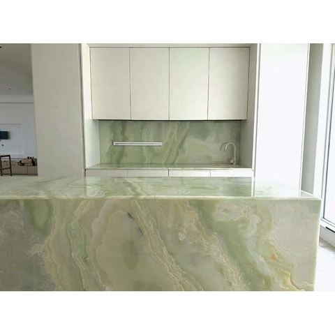 Прозрачные светло-зеленые мраморные плиты из оникса для кухни